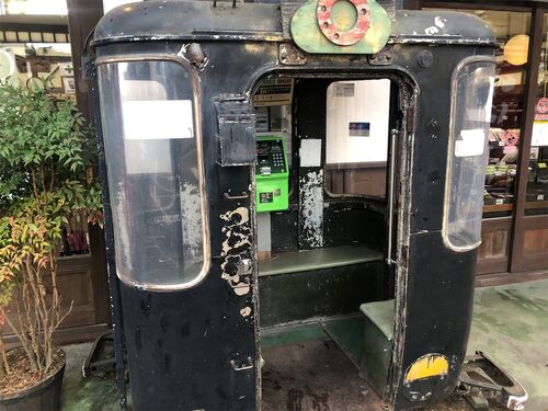 栃木県の日光東照宮近くにあったお土産屋さん。そのお店の前に、謎の公衆電話BOXがありました。
